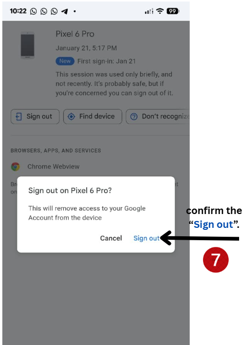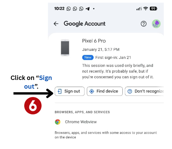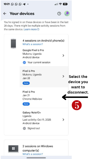 This shows you all devices where your account is currently or recently signed in.5. You’ll see a list of Devices connected to your Gmail account. In this case I have chosen to disconnect "Google Pixel 6 Pro".