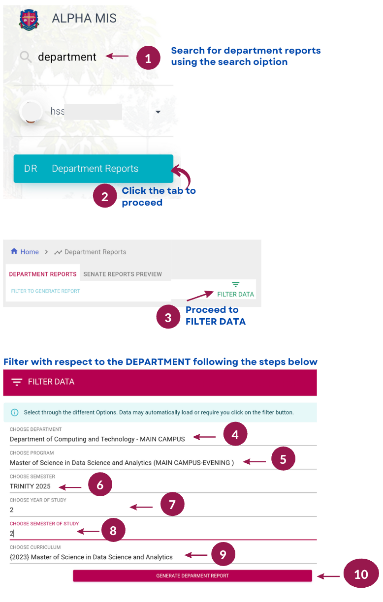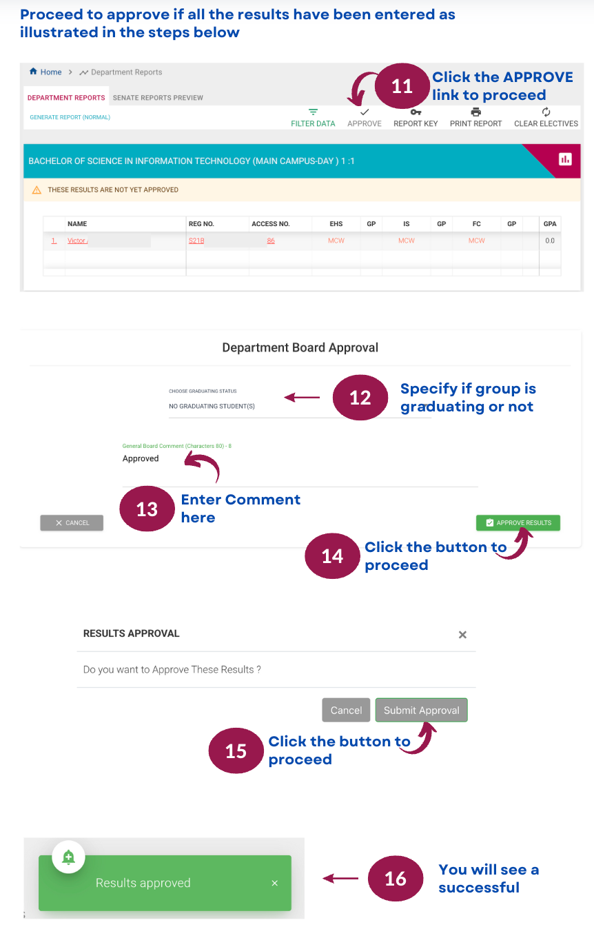How do I approve results at department level as Head of Department? Access the Alpha webapplication page using the Link.Proceed to login to Application using the staff credentials. Refer to the GUIDE in case of any challenges. Follow the steps that follow below: Published 31/10/2025 09:22